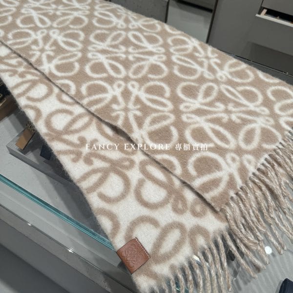 LOEWE ANAGRAM雙面混紡圍巾-奶茶色