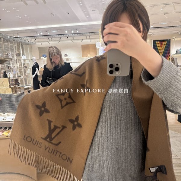 LV M78125 REYKJAVIK羊絨圍巾-摩卡