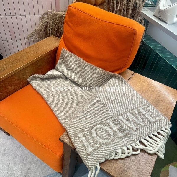 LOEWE 喀什米爾羊毛圍巾-奶茶