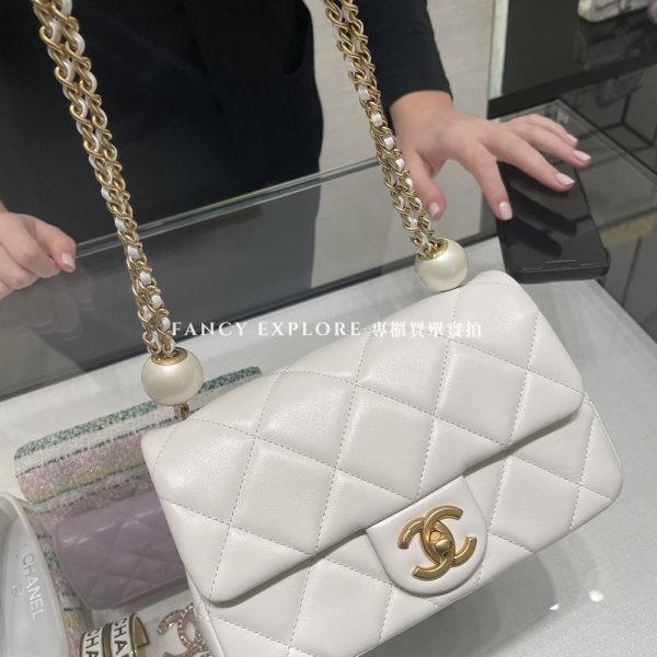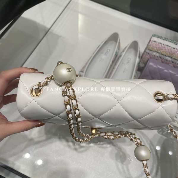 香奈兒調節珍珠肩背包 白