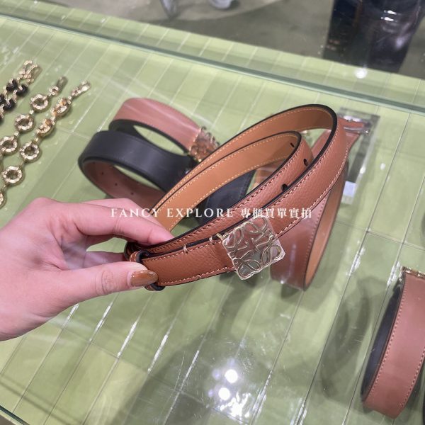 LOEWE ANNAGRAM金釦牛皮皮帶-棕
