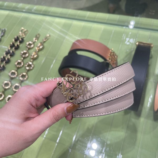 LOEWE ANNAGRAM金釦牛皮皮帶-沙色