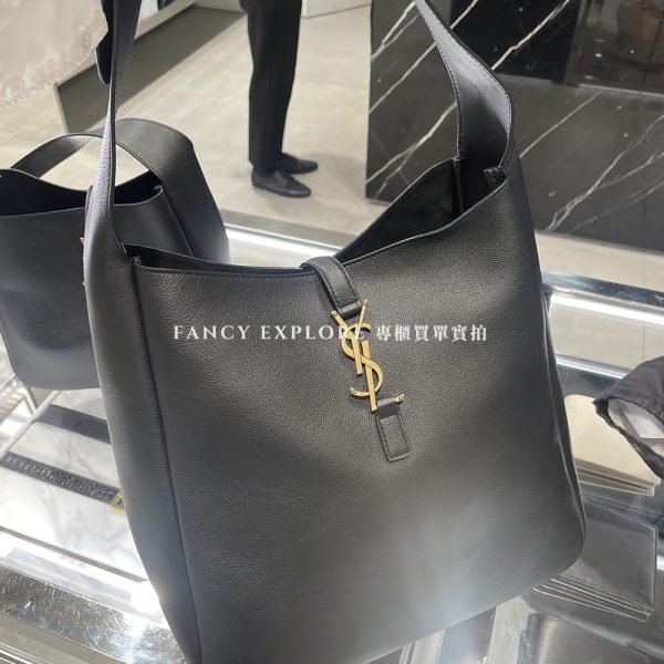 YSL LE 5 À 7皮革大型肩背包-黑