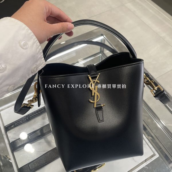 YSL LE 37小款亮面皮革手提包-黑