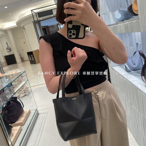 LOEWE MINI PUZZLE FOLD TOTE 小款折疊托特包-黑