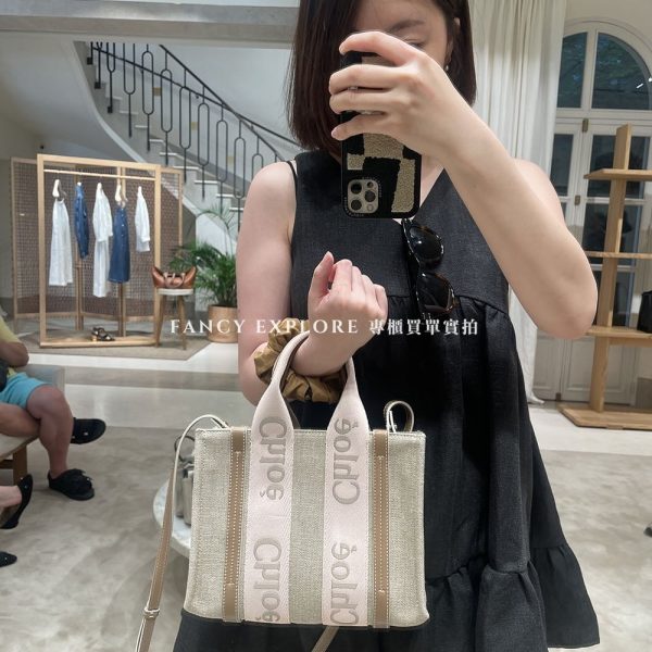 CHLOE WOODY TOTE 小款帆布手提包-嫩粉
