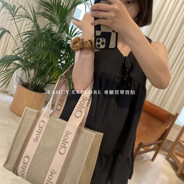 CHLOE WOODY TOTE 中款帆布手提包-嫩粉