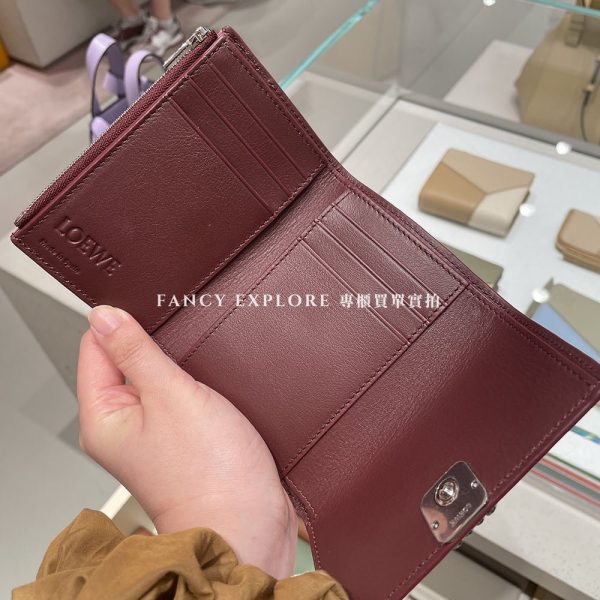 LOEWE 豎款顆粒牛皮短夾 酒紅色