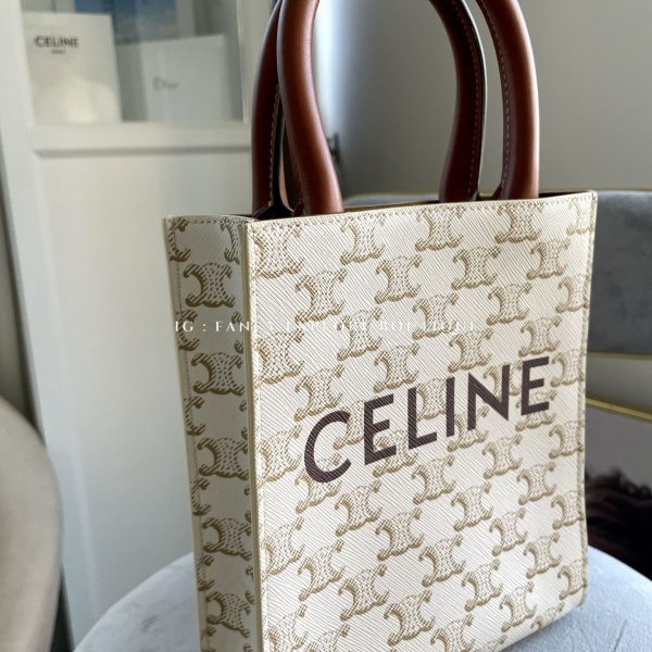 CELINE TRIOMPHE CANVAS老花迷你直式手提袋-白