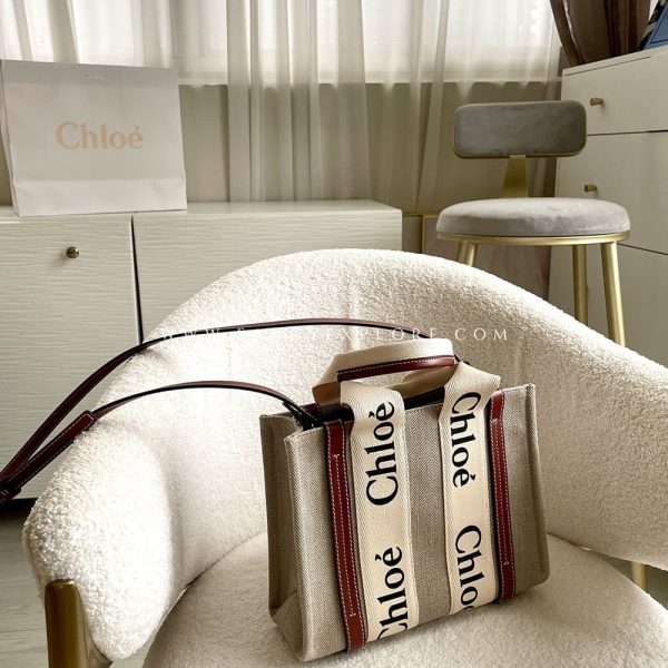 CHLOE WOODY TOTE 小款帆布手提包-焦糖
