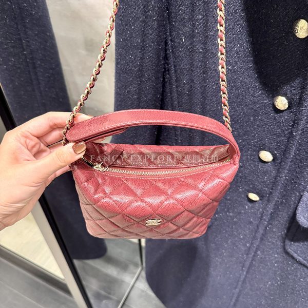 CHANEL迷你手提鏈包-酒紅