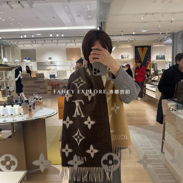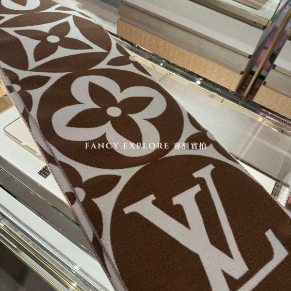 LV M94853 MEDALLION 羊毛圍巾-淺棕