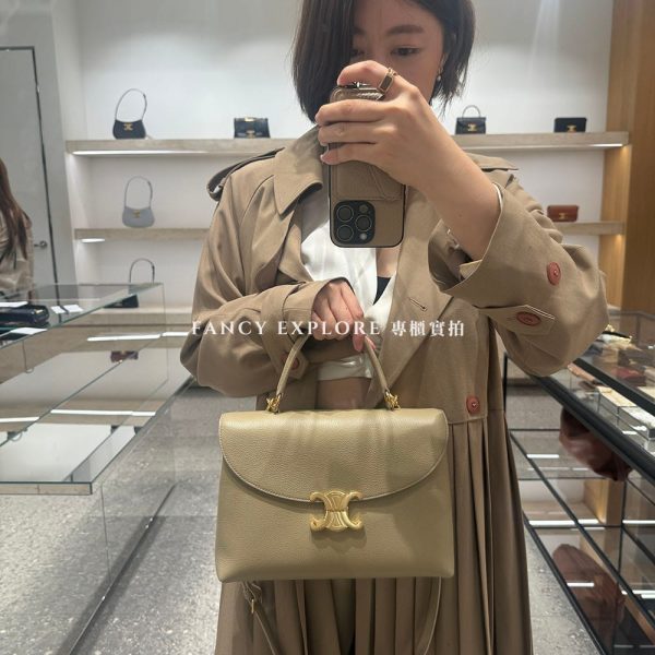 CELINE NINO牛皮中號把手肩背包-咖色