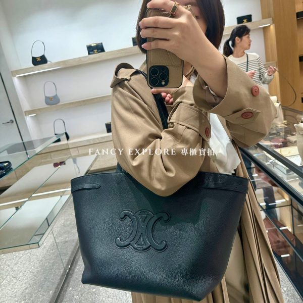 CELINE ANAÏS TRIOMPHE牛皮中號托特包-黑