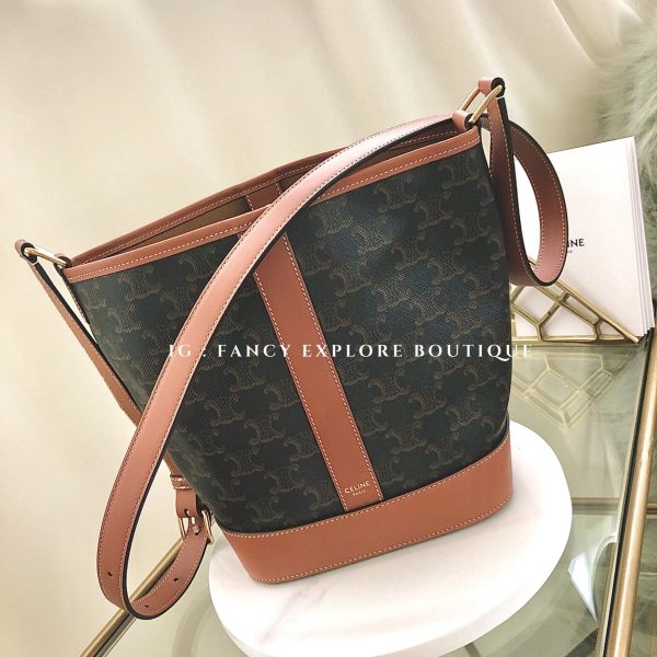 CELINE TRIOMPHE CANVAS 帆布牛皮水桶包-小
