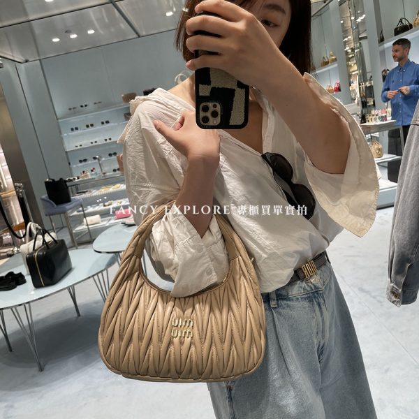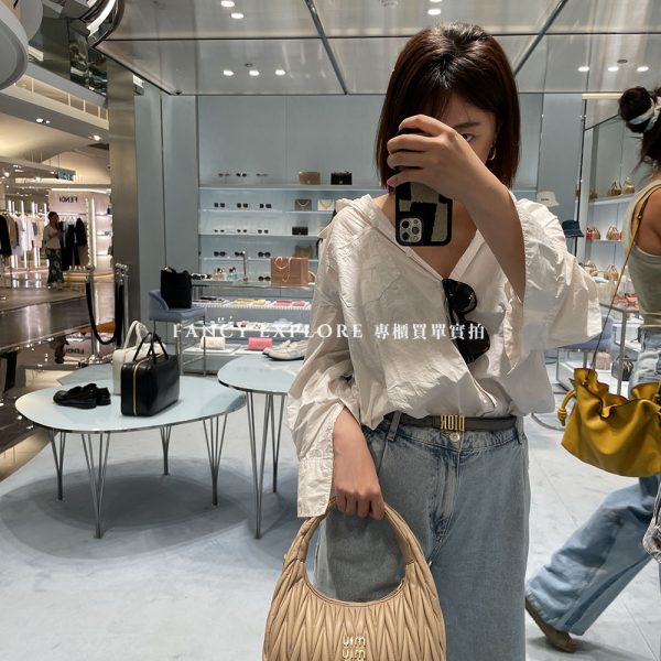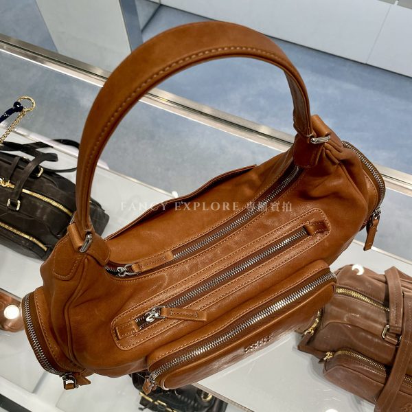 MIUMIU POCKET中號納帕皮革肩背包-棕