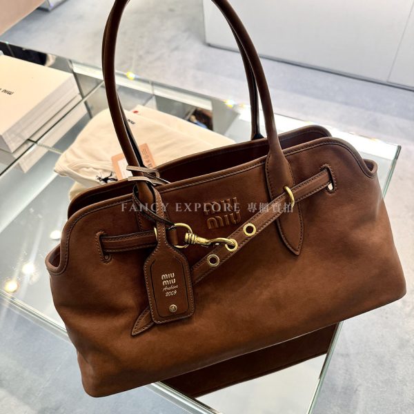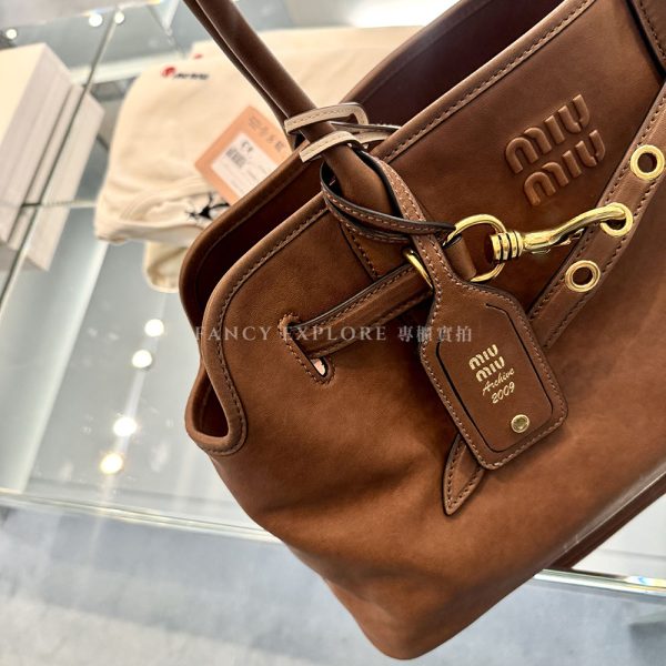 MIUMIU ADVENTURE大號納帕皮革手提包-棕
