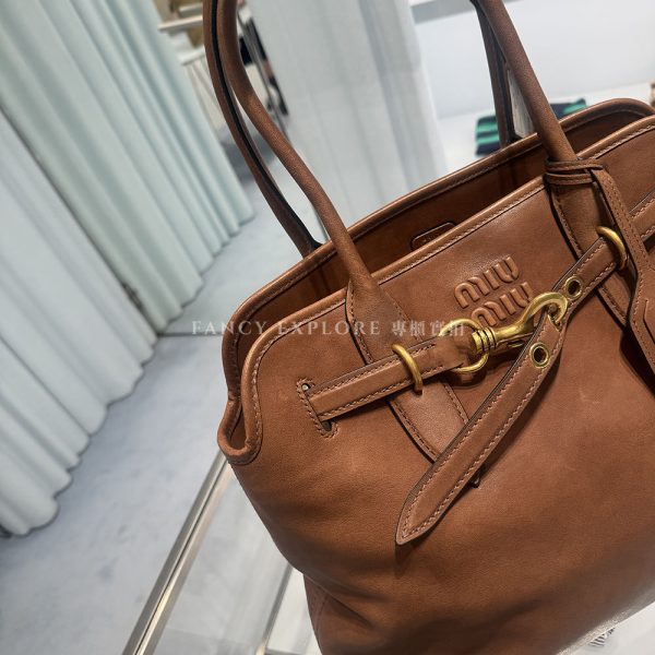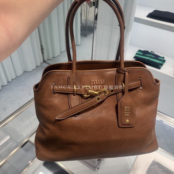 MIUMIU ADVENTURE中號納帕皮革手提包-棕