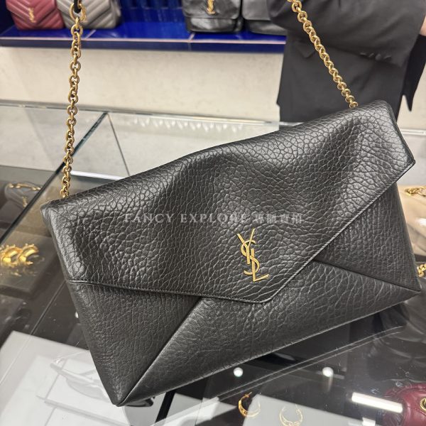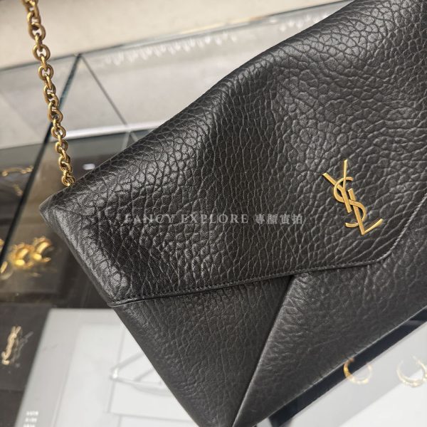 YSL CASSANDRE鏈條小羊皮信封包-黑