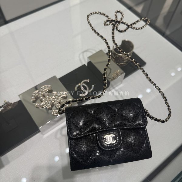 CHANEL經典雙C迷你皮夾鏈包-黑