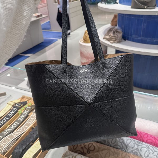 LOEWE PUZZLE FOLD橫式托特包-黑