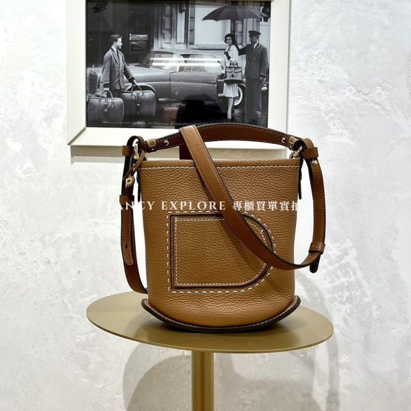 LOEWE PEBBLE迷你顆粒牛皮水桶包-沙色