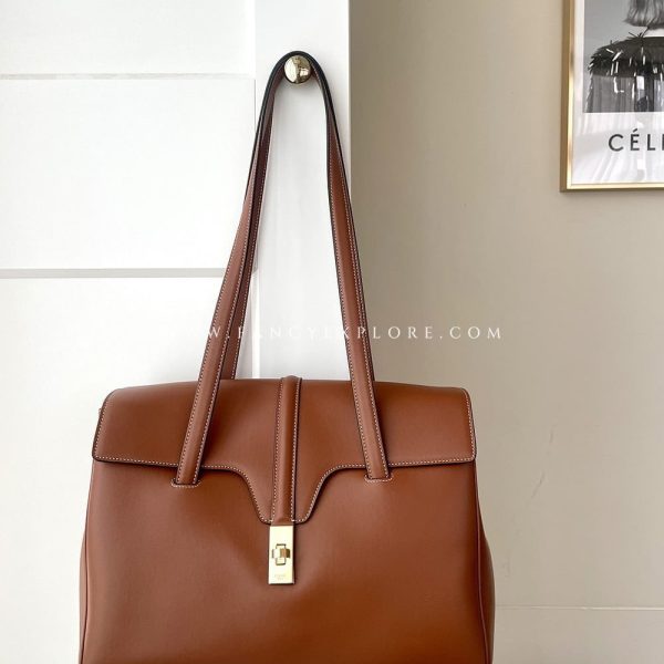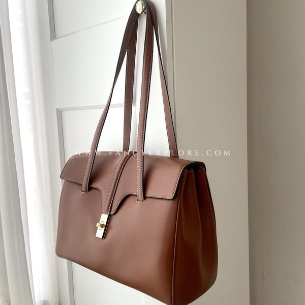 CELINE AVA TRIOMPHE金扣牛皮肩背包-咖啡
