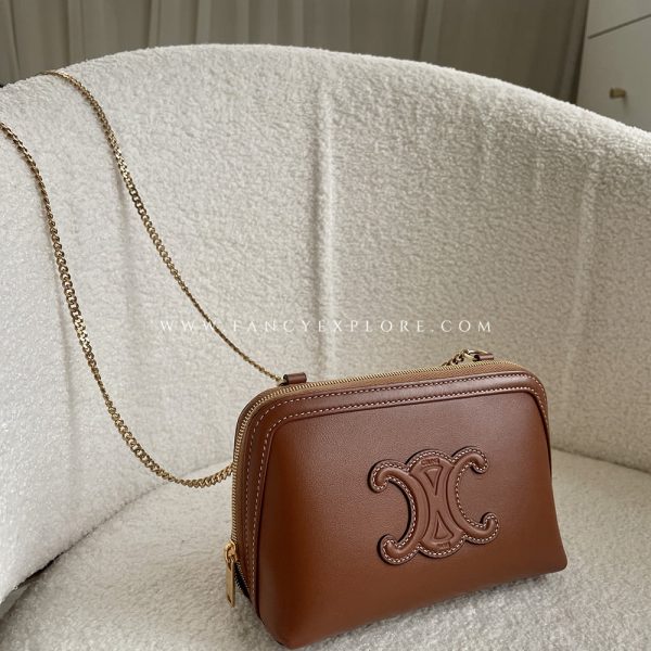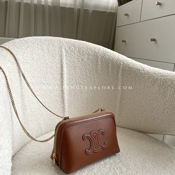 CELINE CUIR TRIOMPHE迷你牛皮鍊包-棕