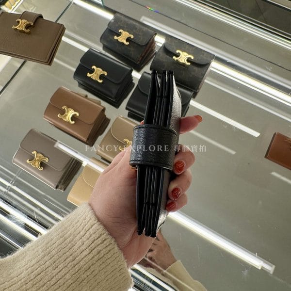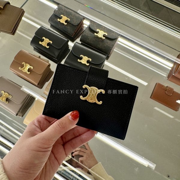 CELINE ACCORDEON粒面牛皮革卡夾 -黑