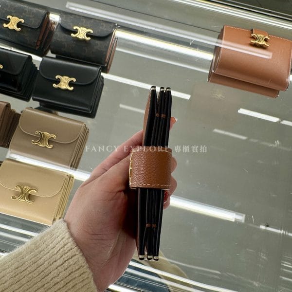 CELINE ACCORDEON粒面牛皮革卡夾 -焦糖
