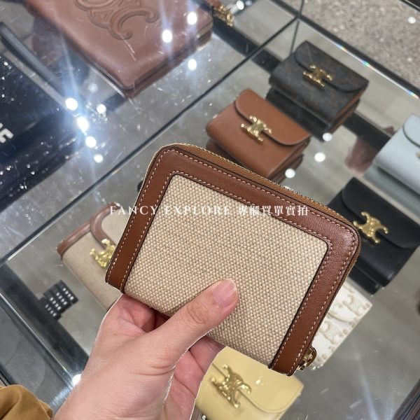 CELINE CUIR TRIOMPHE織布牛皮拉鍊零錢包