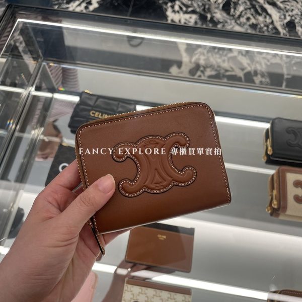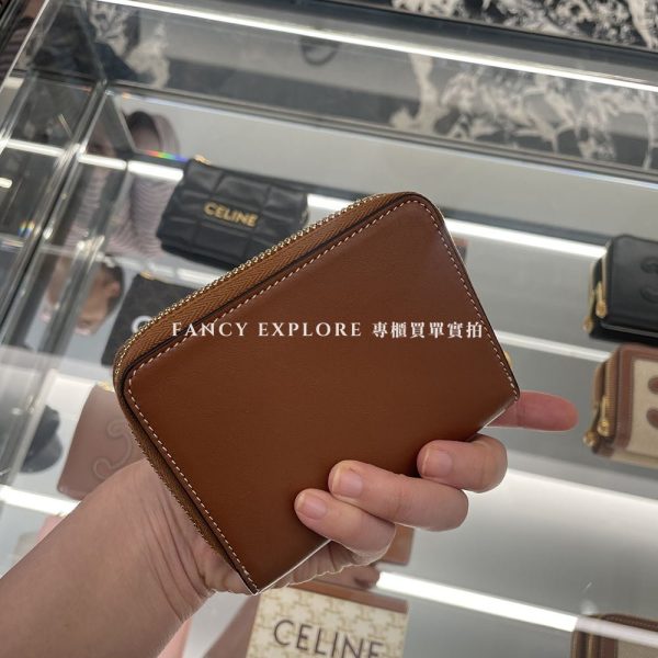 CELINE CUIR TRIOMPHE光滑牛皮拉鍊零錢包-棕