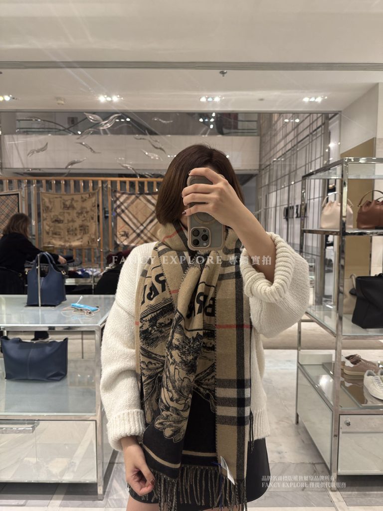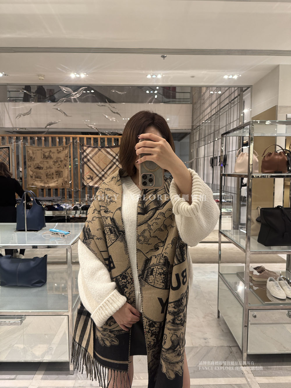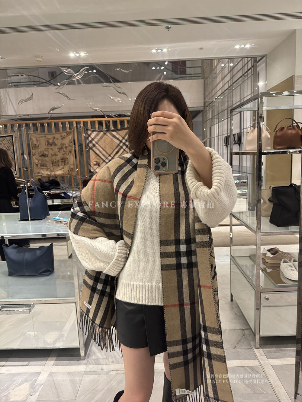 BURBERRY雙面EKD克什米爾羊絨毛圍巾