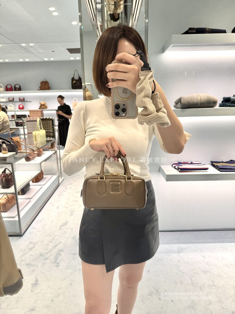 MIUMIU ARCADIE小號牛皮手提包-墨綠