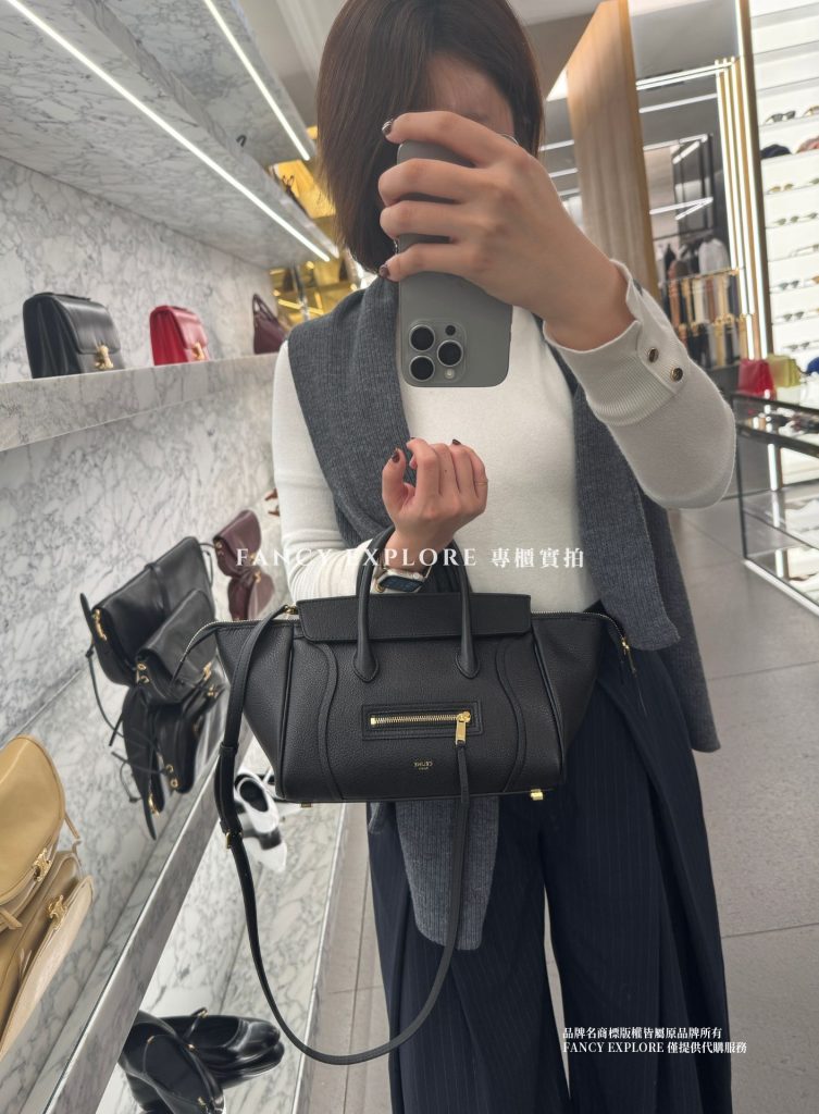 CELINE LUGGAGE粒面牛皮小號手提包-黑