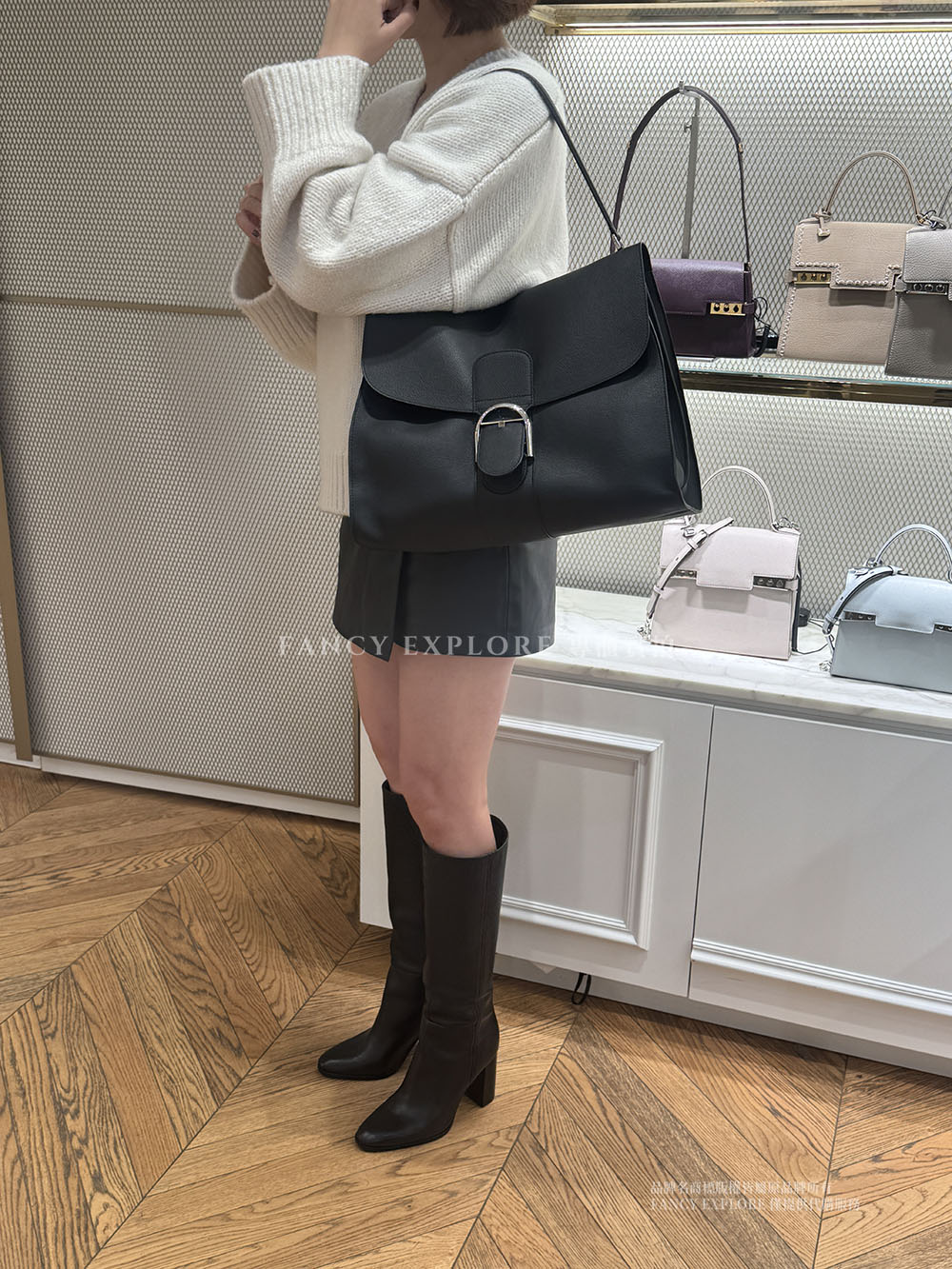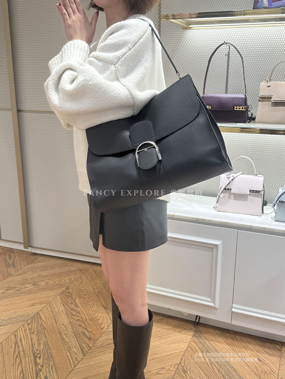 DELVAUX BRILLANT TEMPO大號肩背包-黑