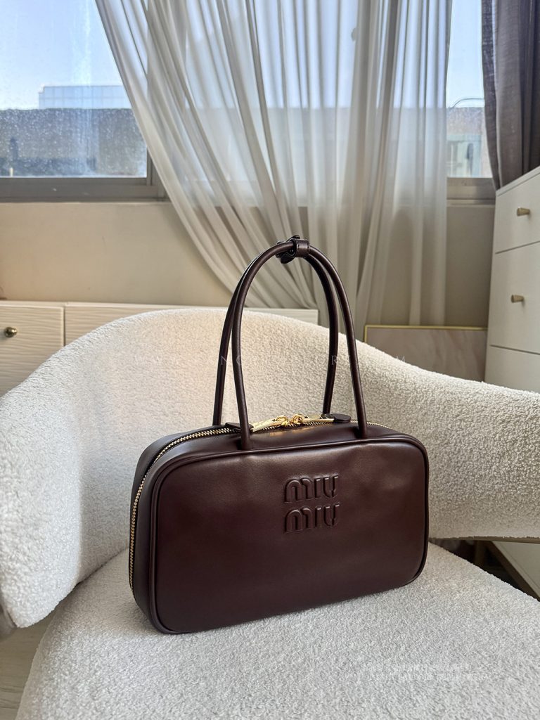 MIUMIU BEAU中號牛皮手提包-酒紅色