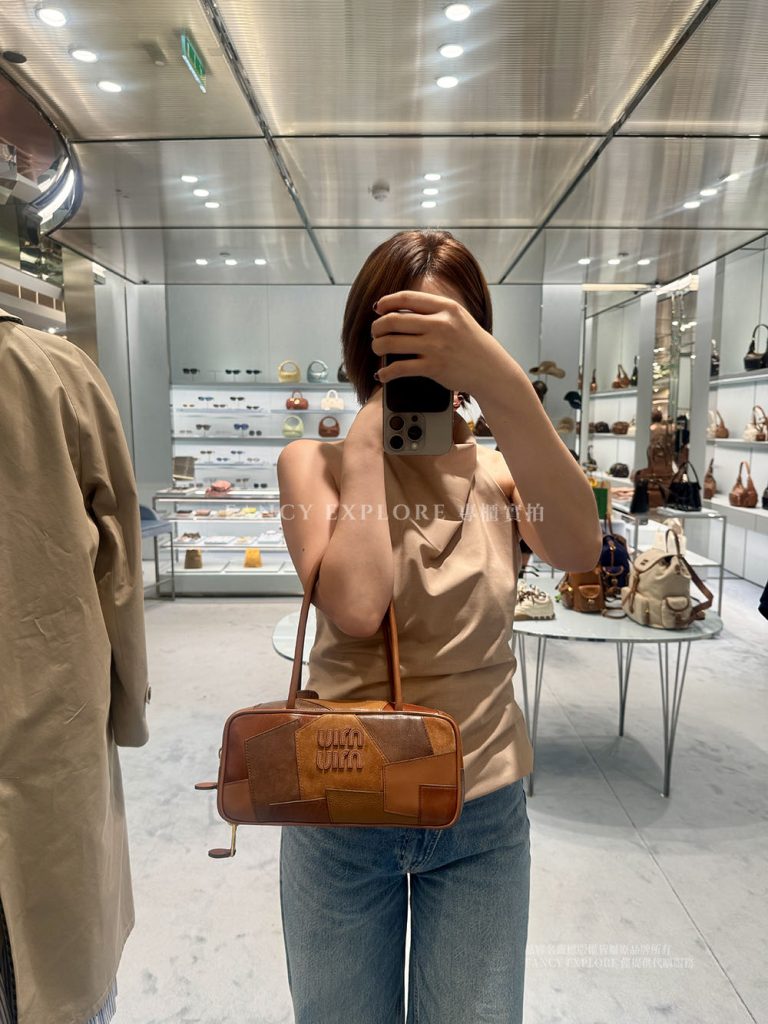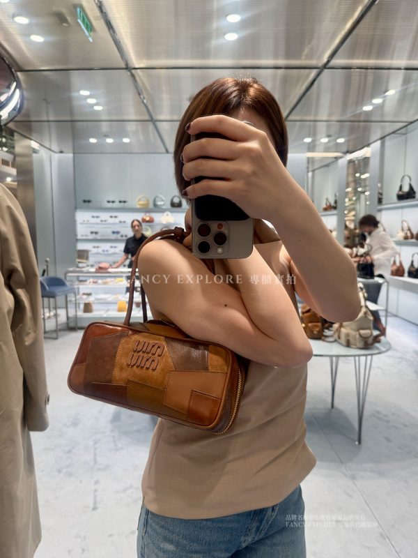MIUMIU BEAU小款皮革拼縫手提包