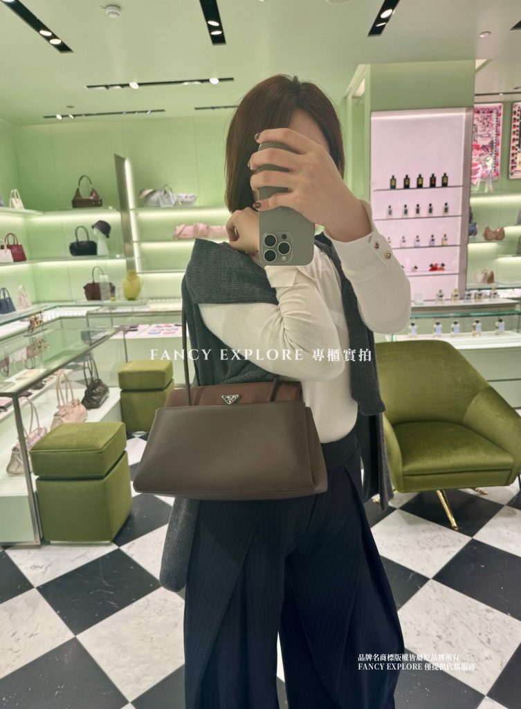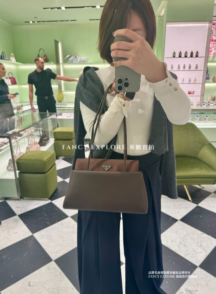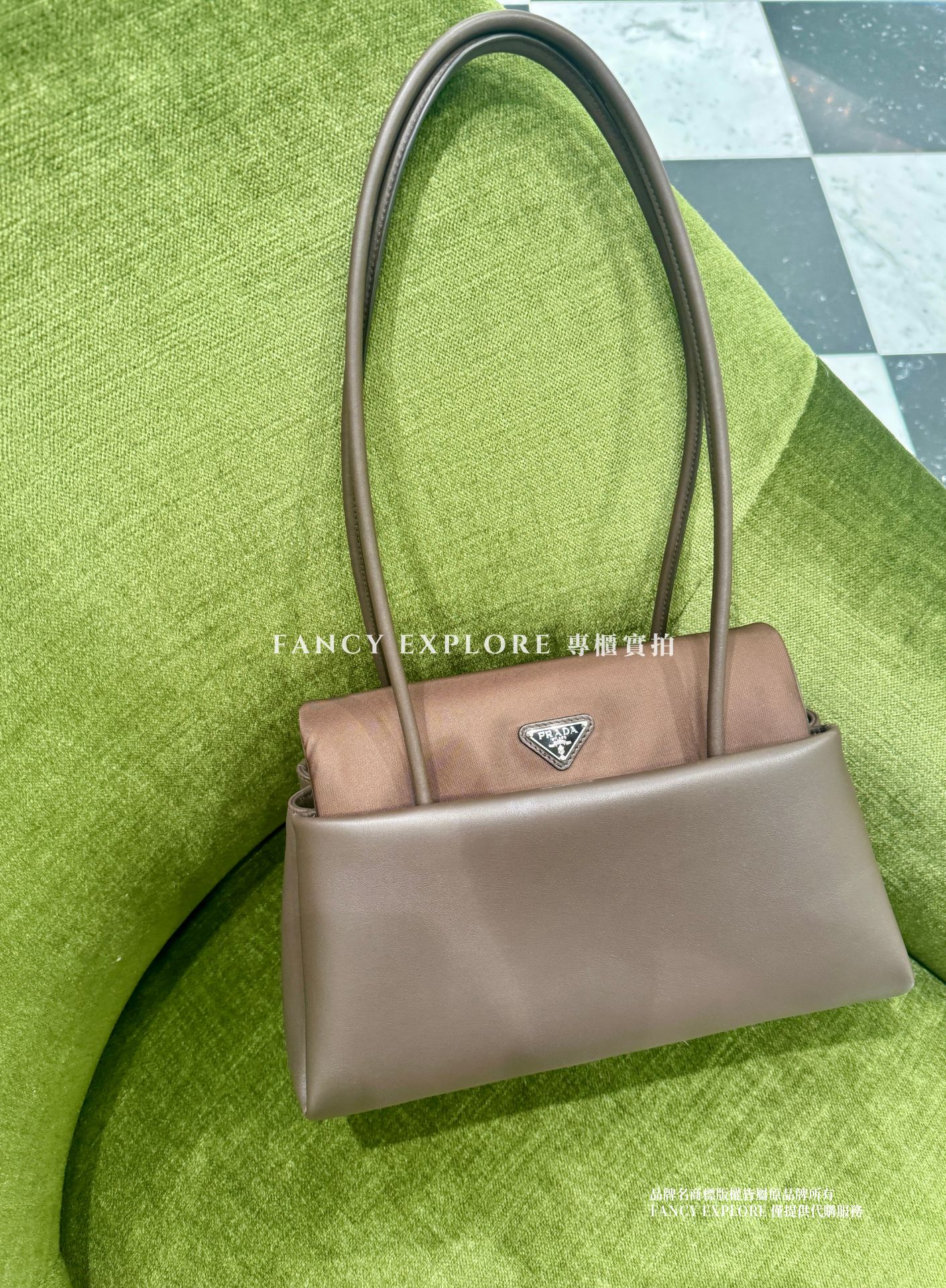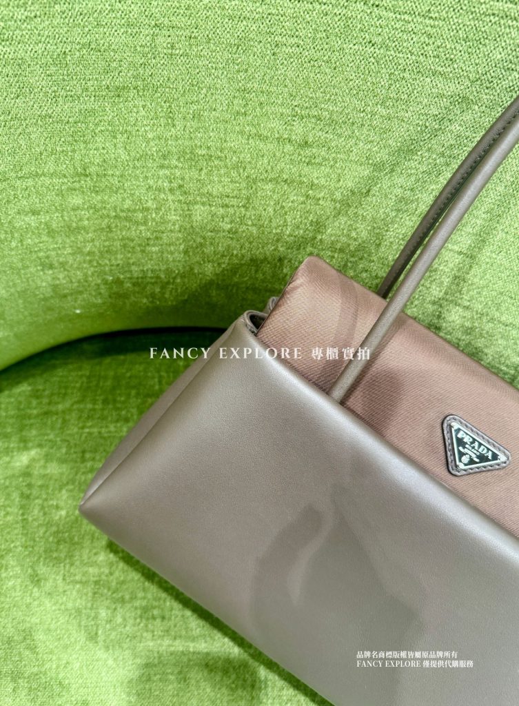 PRADA PASSAGE中款尼龍皮革肩背包-棕