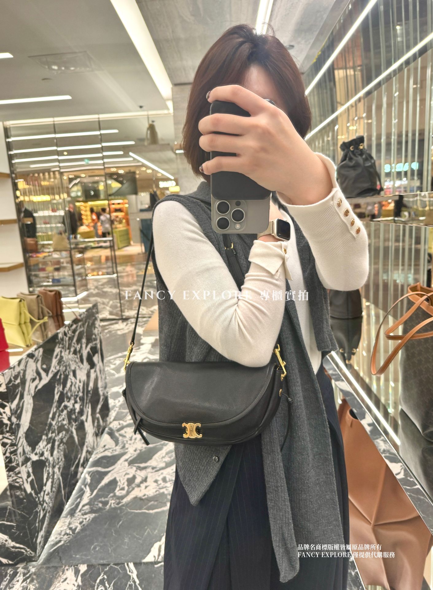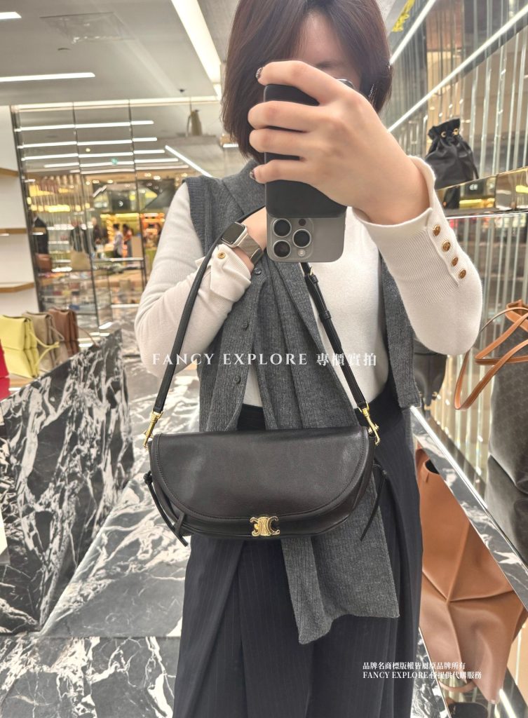 CELINE SOFT TRIOMPHE HALFMOON小號肩背包-黑