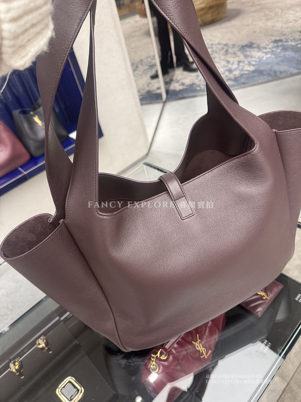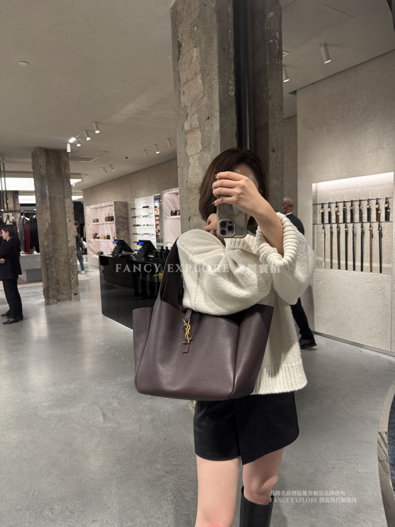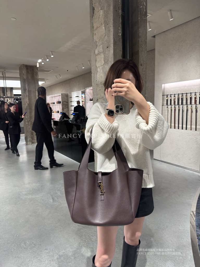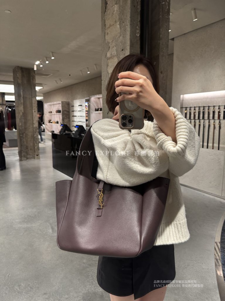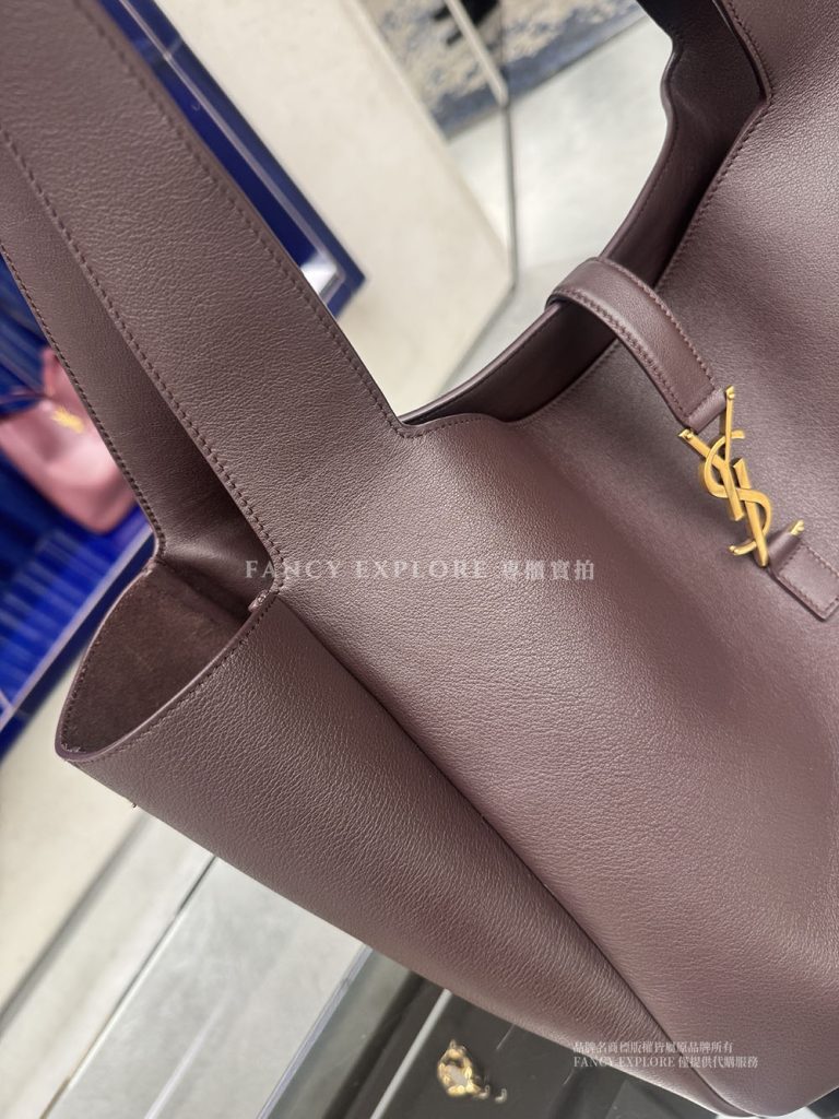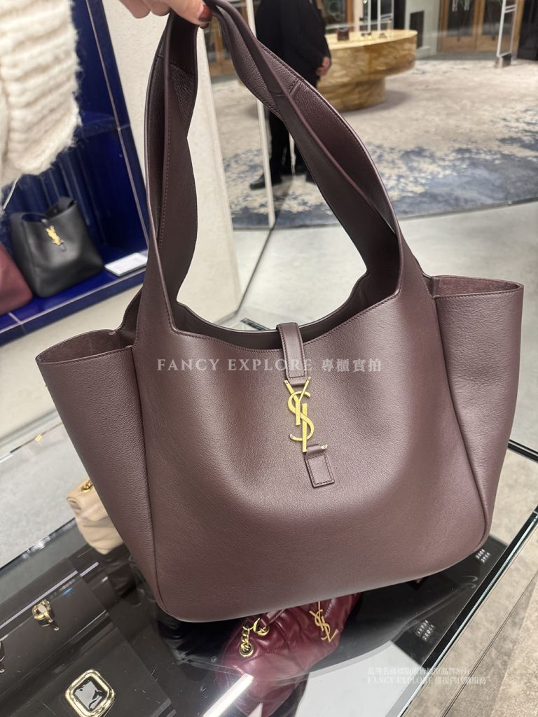 YSL BEA粒面皮革托特包-酒紅色
